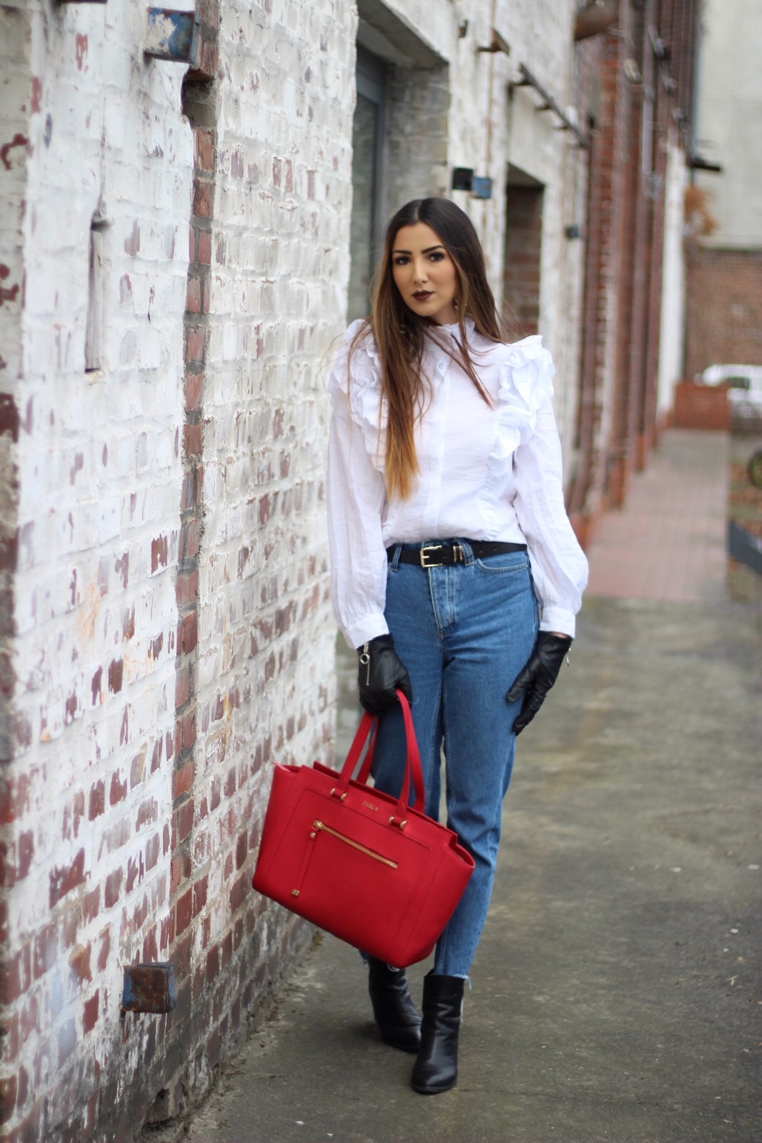 Die weiße Bluse, kann man in unterschiedlichen Varianten stylen. Ob schick für ein Meeting oder lässig im Alltag. Crew Member Lara setzt ihre klassische, weiße Bluse gekonnt in Szene und kombiniert sie mit lockerer Boyfriend Jeans und einem schlichten Taillengürtel.